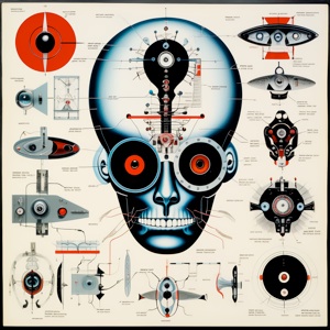 Die Serie präsentiert Schädel, die sowohl organische als auch technologische Elemente aufweisen, darunter Roboter- und Cyborg-Elemente. Die Schädel zeigen eine detaillierte Anatomie, die eine Vielzahl von technologischen Anpassungen und Veränderungen aufweist.